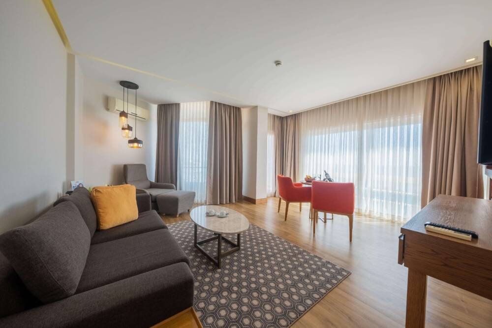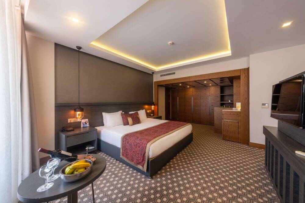 Oda Donanımı: Klima, minibar, kasa, Wi‑Fi, TV, balkon, ön büro 24 saat hizmet