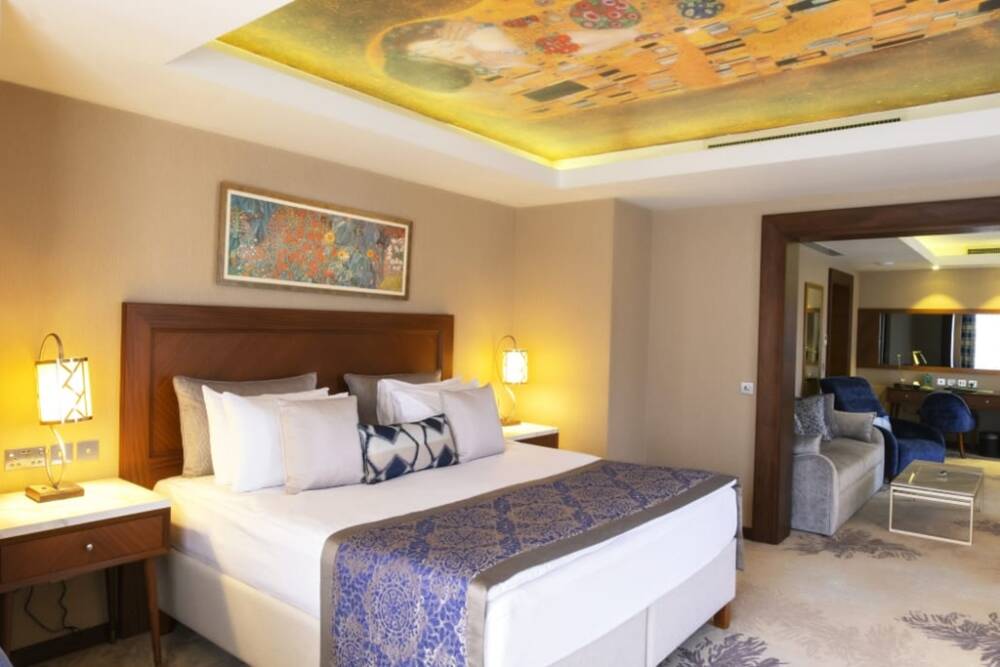 Barlar: Heritage Lounge (pasta, çay), Piazza (otantik Osmanlı konsepti), Misty Bar (roof‑top kokteyl), lobby bar