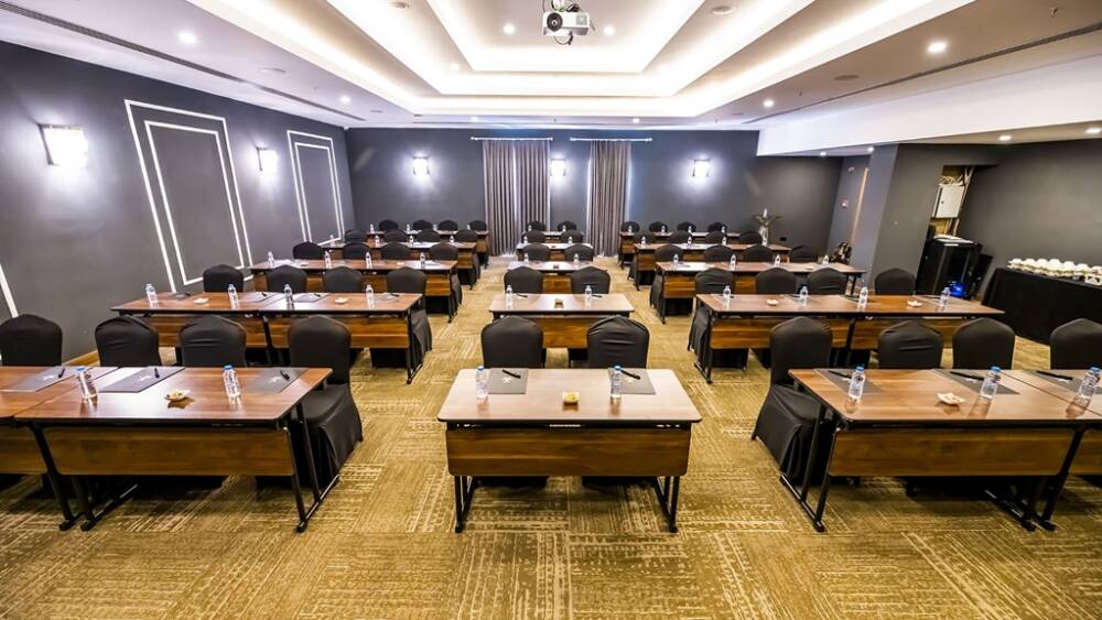 İş & servis: 24 saat resepsiyon, vale, otopark, döviz, toplantı salonu, kuru temizleme, tur danışma, ATM, VIP check‑in, çamaşır, market, kuaför, çocuk bakımı