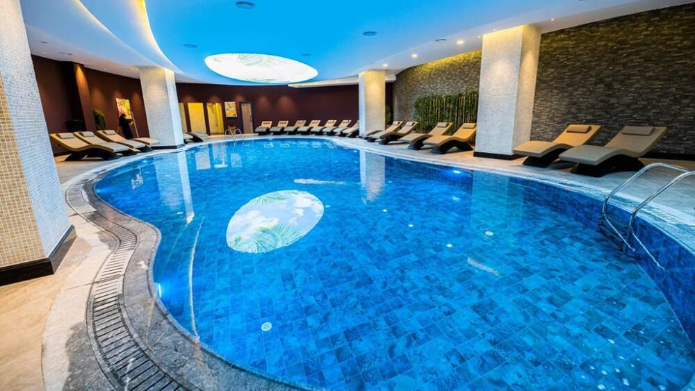 Havuzlar: Açık havuz (1 300 m²), kapalı havuz (150 m²), çocuk havuzu