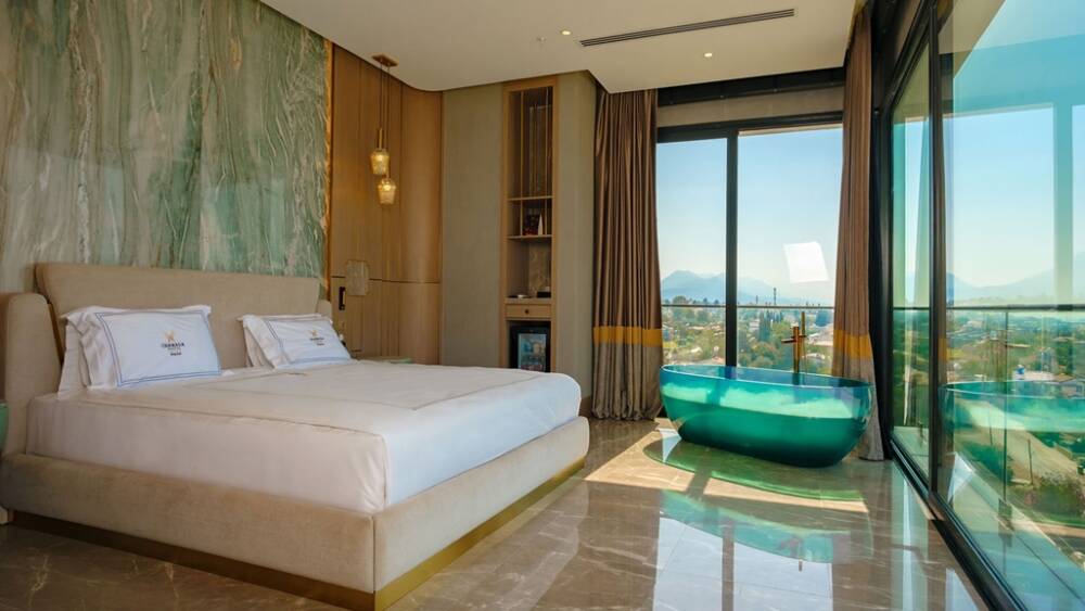 Kurulu Alan: Yaklaşık 35 000 m², 286 oda/süit ve mini villalarla deniz, dağ ve şehir manzarası